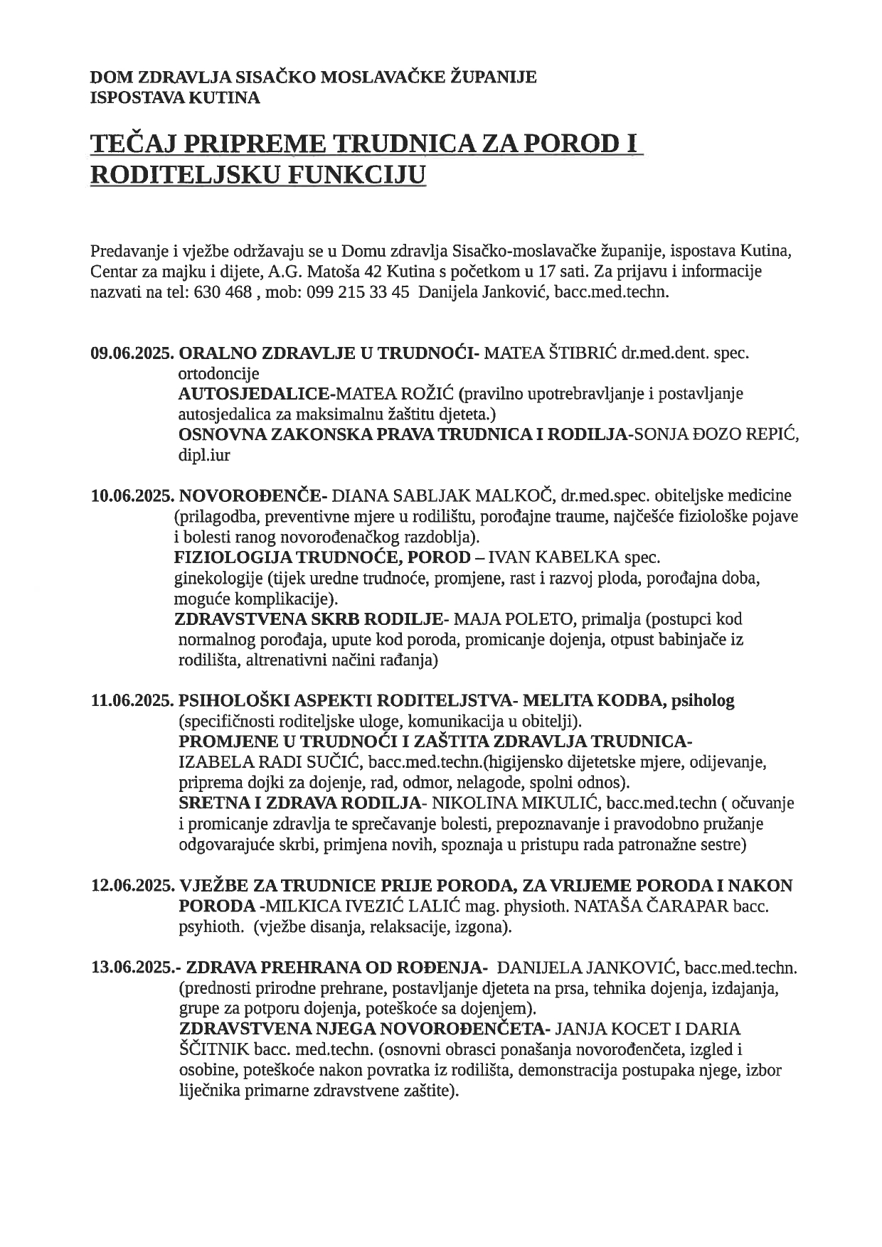 Trudnički tečaj - Kutina - Lipanj